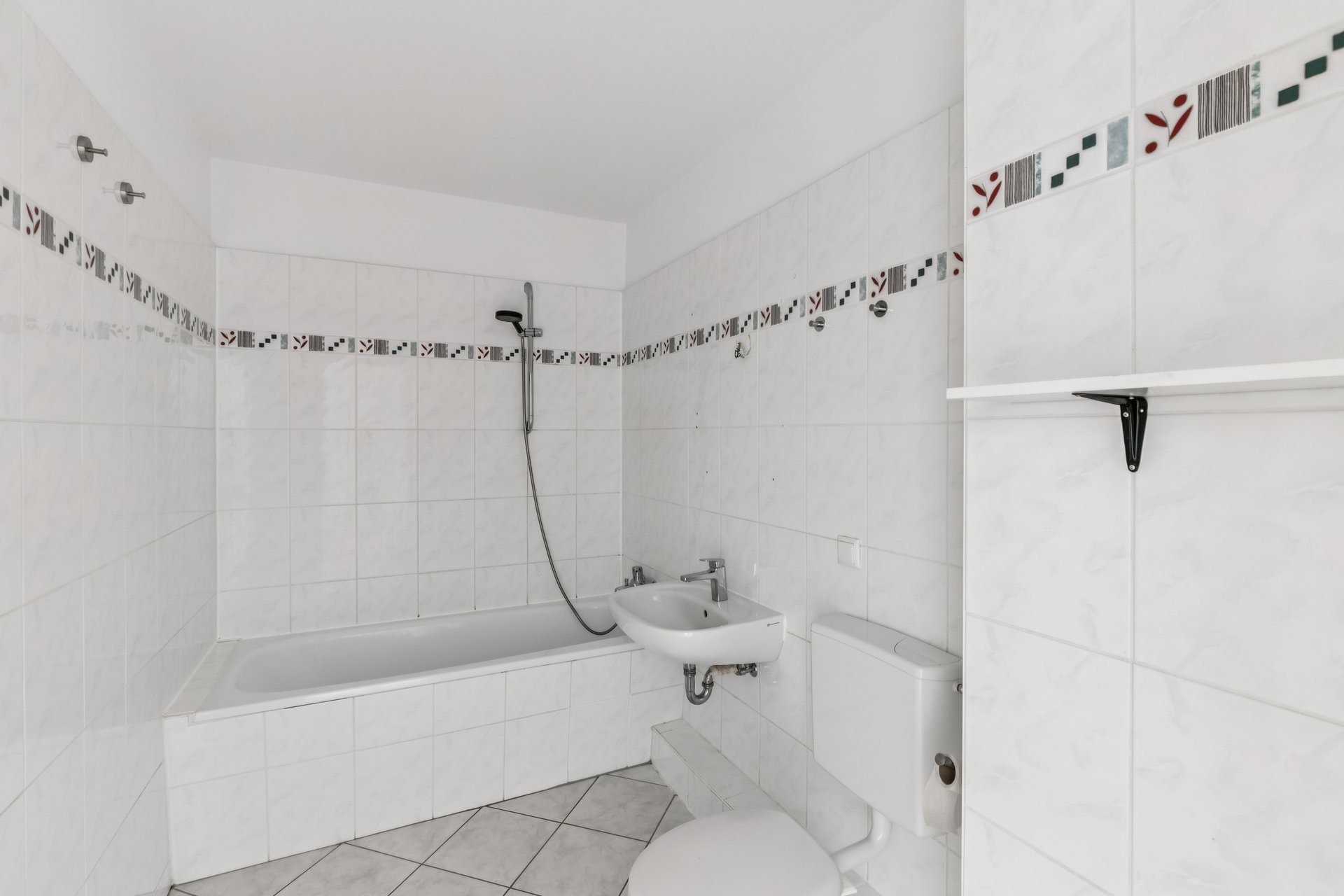 • Ein Wannenbad mit Platz für eine Waschmaschine (gefließt)