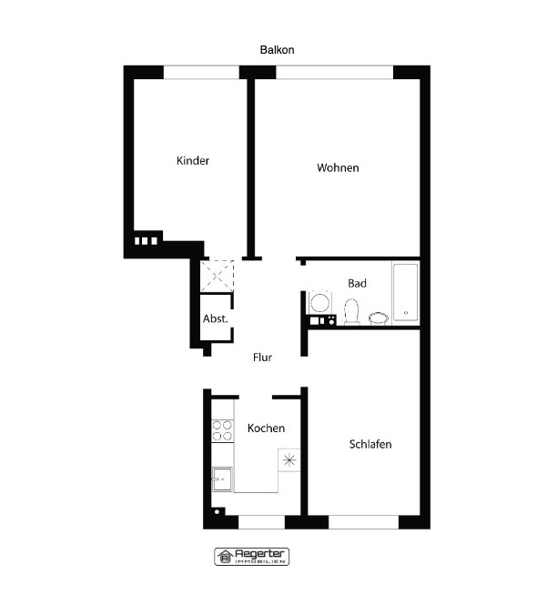 Die Wohnung verfügt über ca. 80 m² Wohnfläche und teilt sich auf in: