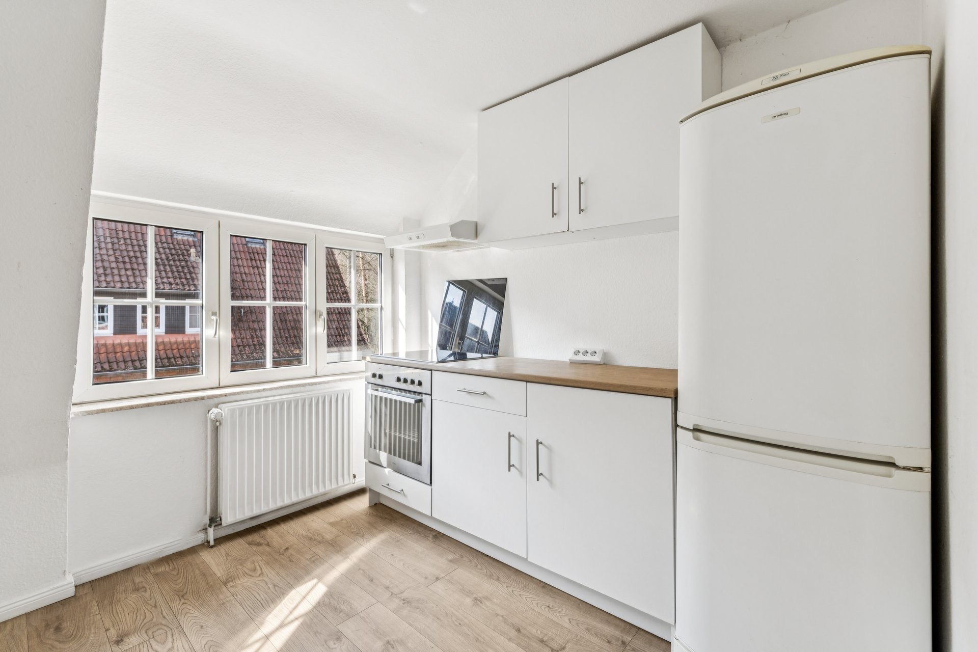 Zwei Zimmer, eine geräumige Küche sowie das Badezimmer befinden sich auf einer Ebene.