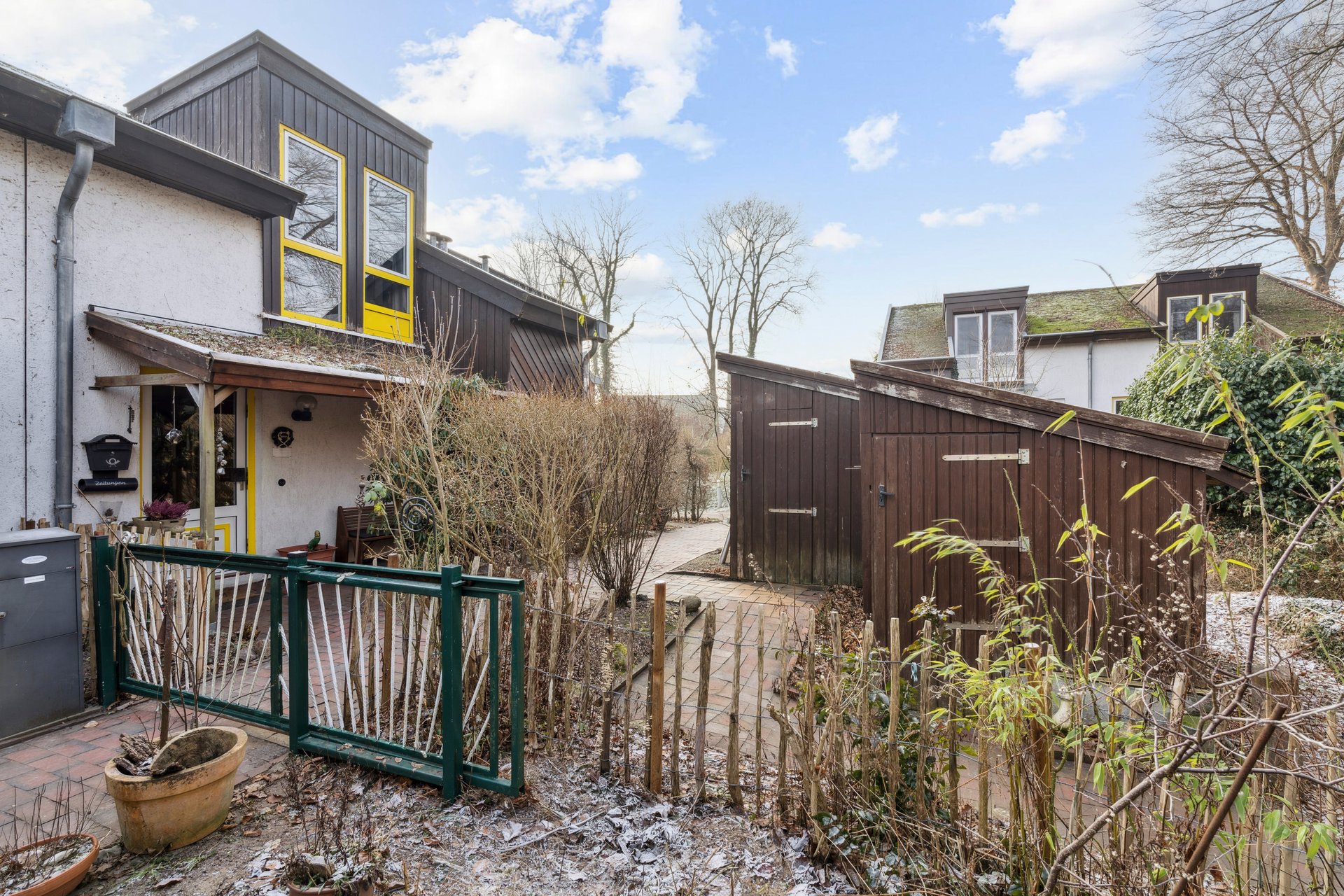 Ein Stellplatz mit Carport auf dem gemeinschaftlich genutzten Vorplatz vervollständigt dieses rundum gelungene