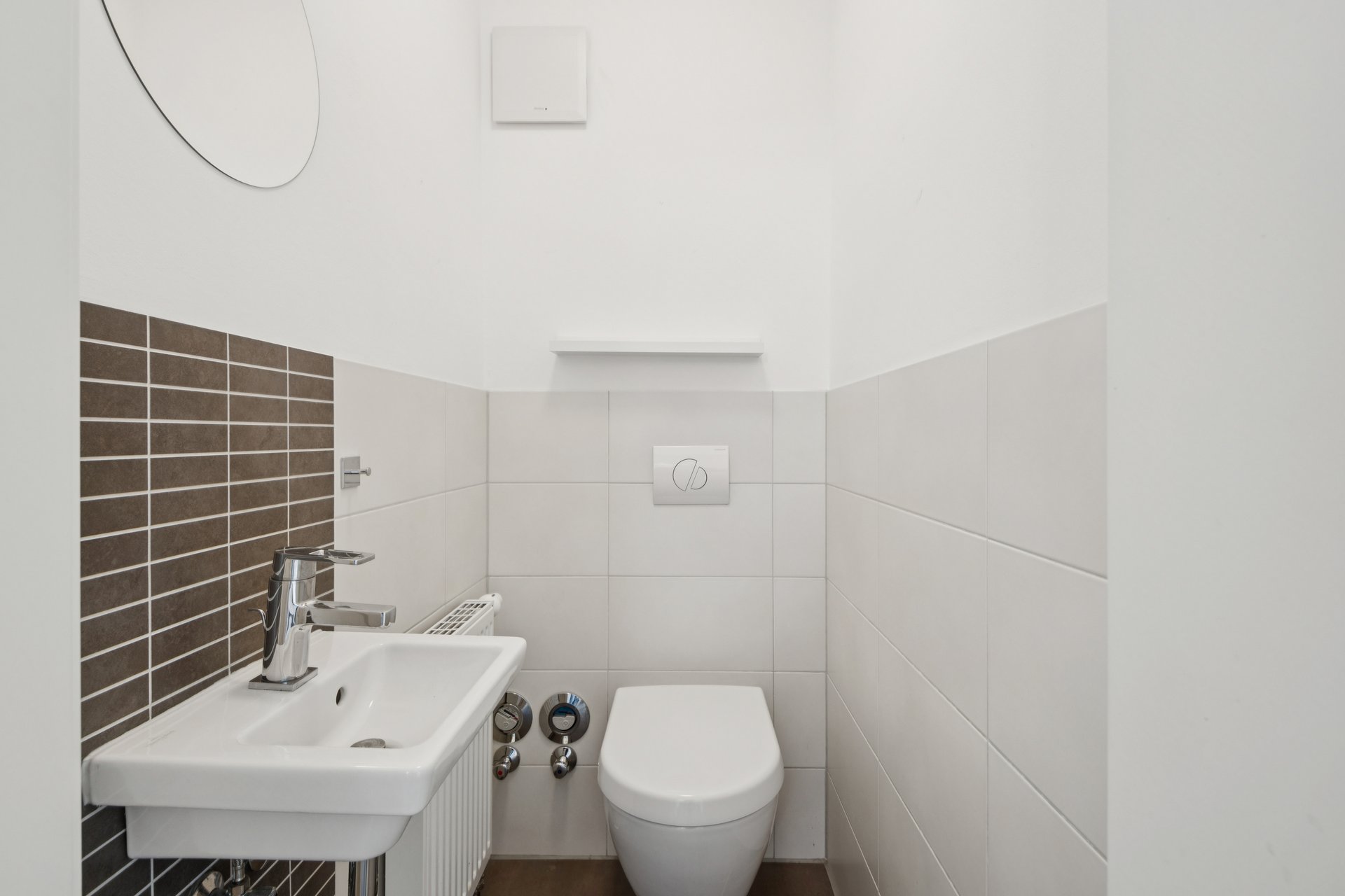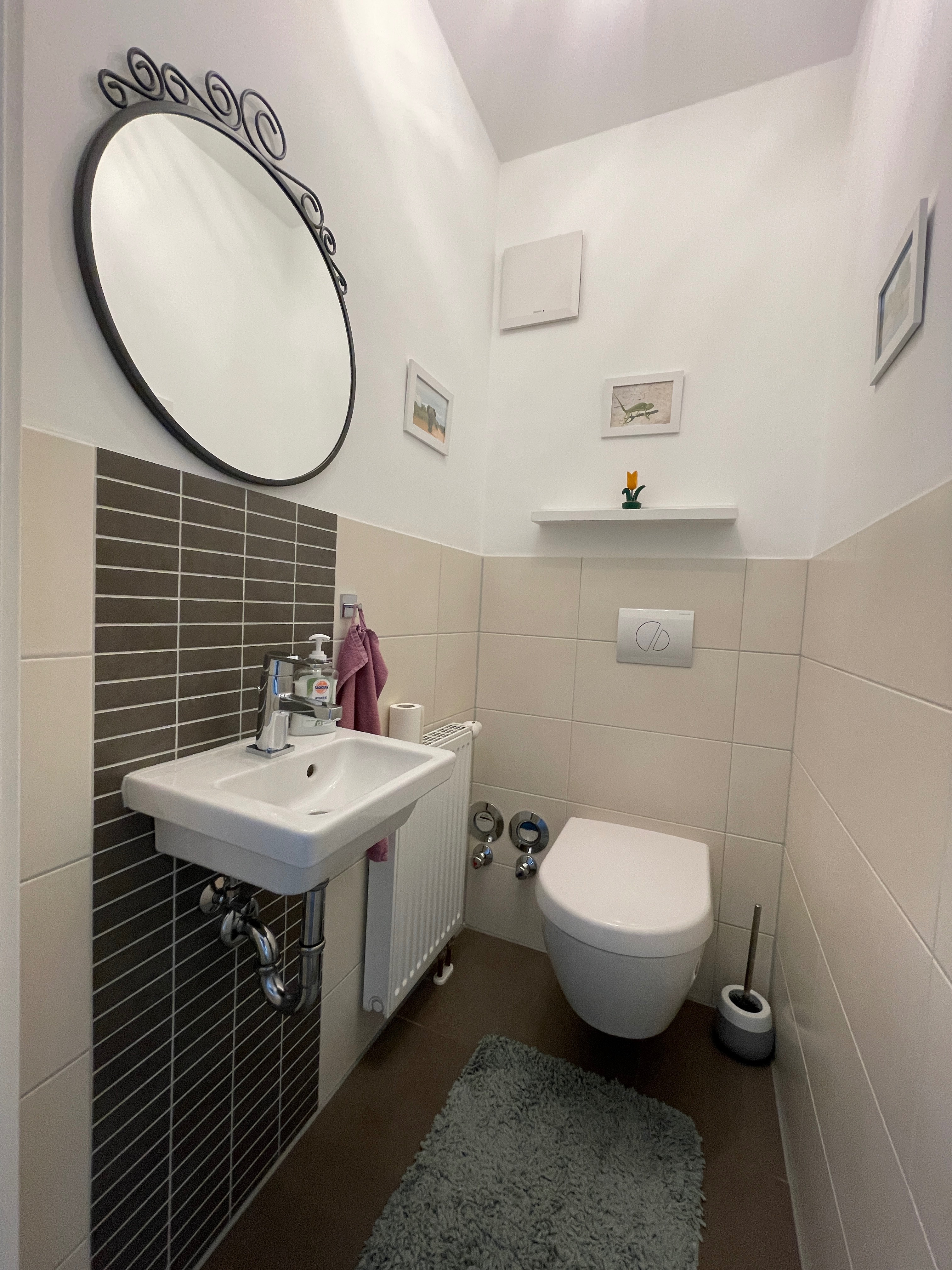 Im 2. Obergeschoss befinden sich der einladende Wohn- und Essbereich mit Zugang zu einem sonnigen Süd-West Balkon, eine große und modern ausgestattete Einbauküche mit allen technischen Geräten, ein helles Badezimmer mit einer komfortablen Badewanne, ein separates Gäste-WC, ein Ankleidezimmer sowie ein Schlafzimmer bzw. Kinderzimmer. Die überwiegend mit Parkett ausgelegten Räume sorgen für eine warme, hochwertige Wohnatmosphäre.
