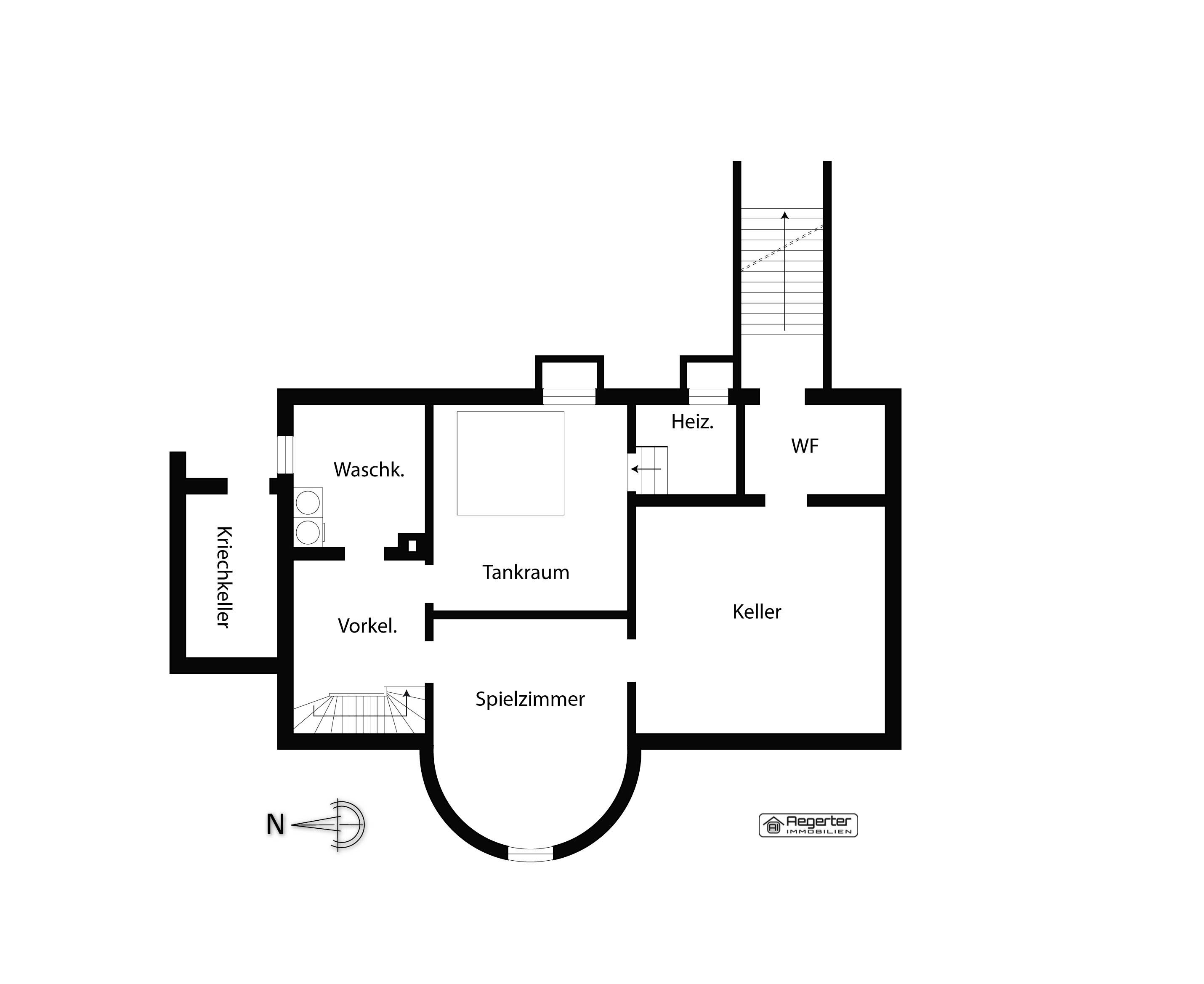 Waschküche bietet der Keller weiteren Stauraum in einem großzügigen Abstellraum sowie
