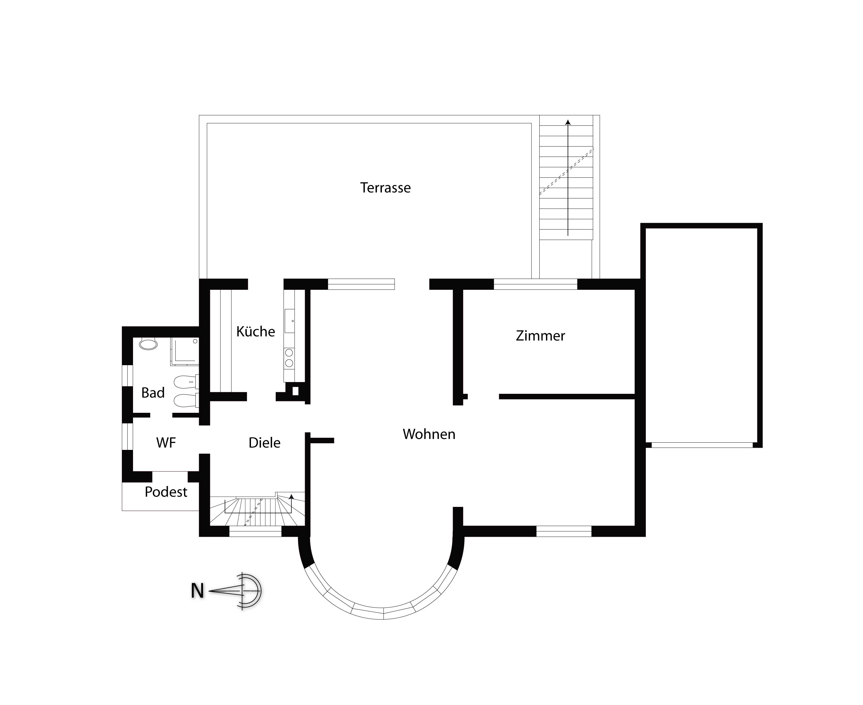 Terrasse und in den Garten. Ein vorhandenes Duschbad rundet das Angebot dieser Etage ab.