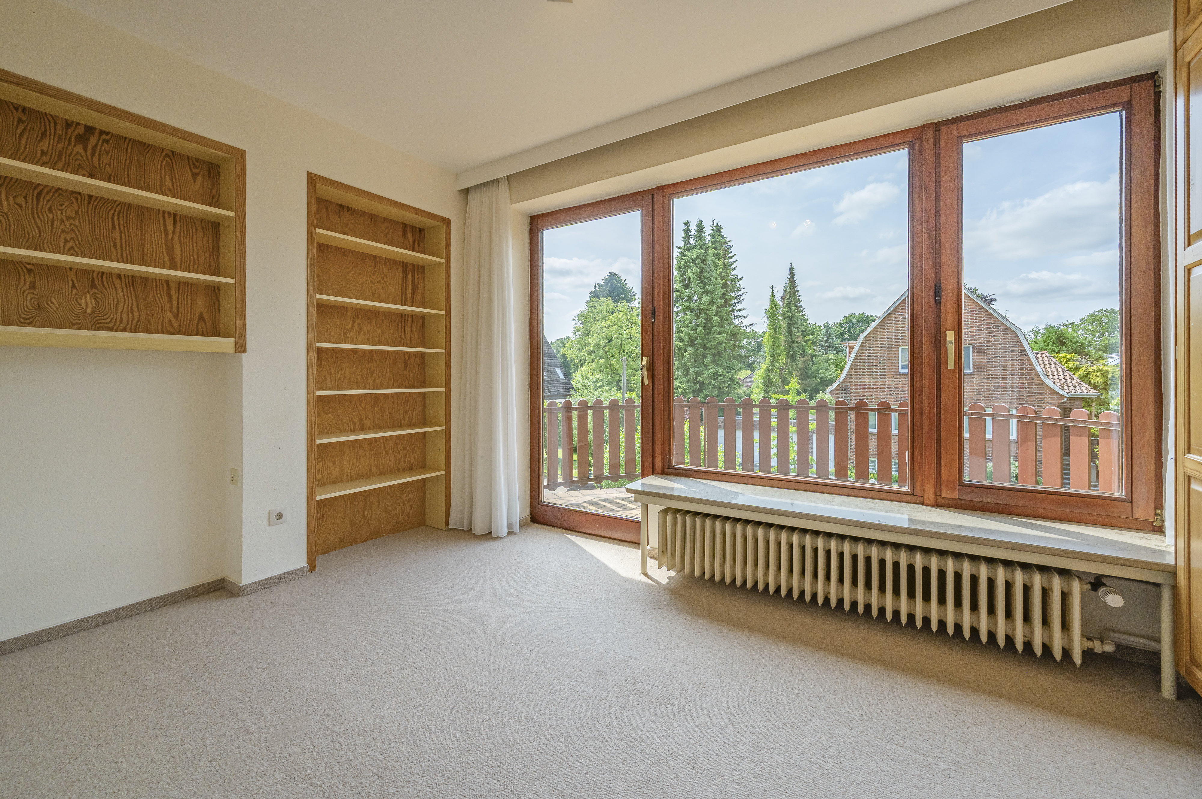 der Zimmer bietet den Zugang zu einem West-Balkon mit schönem Blick in den Vorgarten.