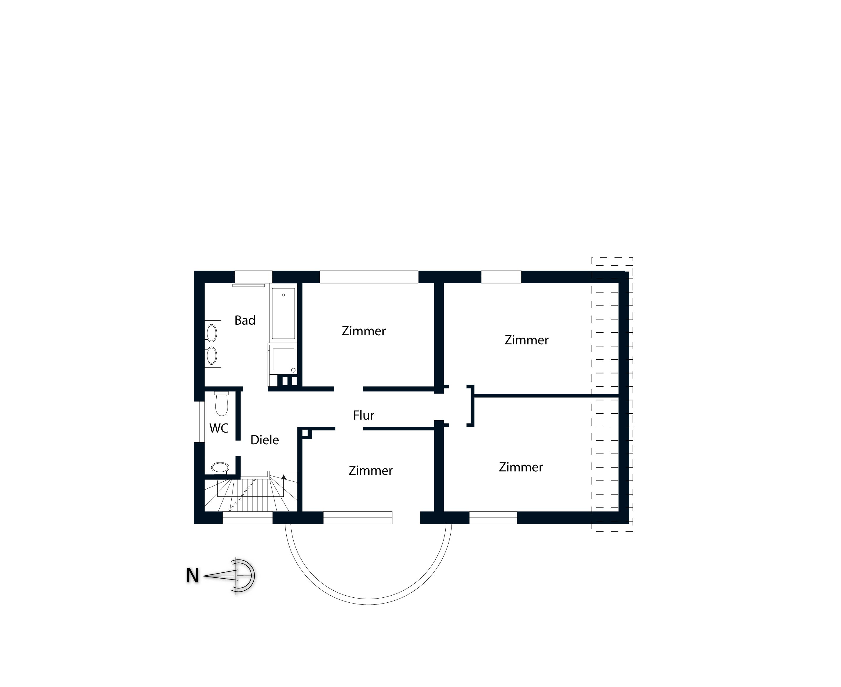 Tageslicht-Bad mit Badewanne und Dusche vier Schlafzimmer sowie ein separates WC. Eines
