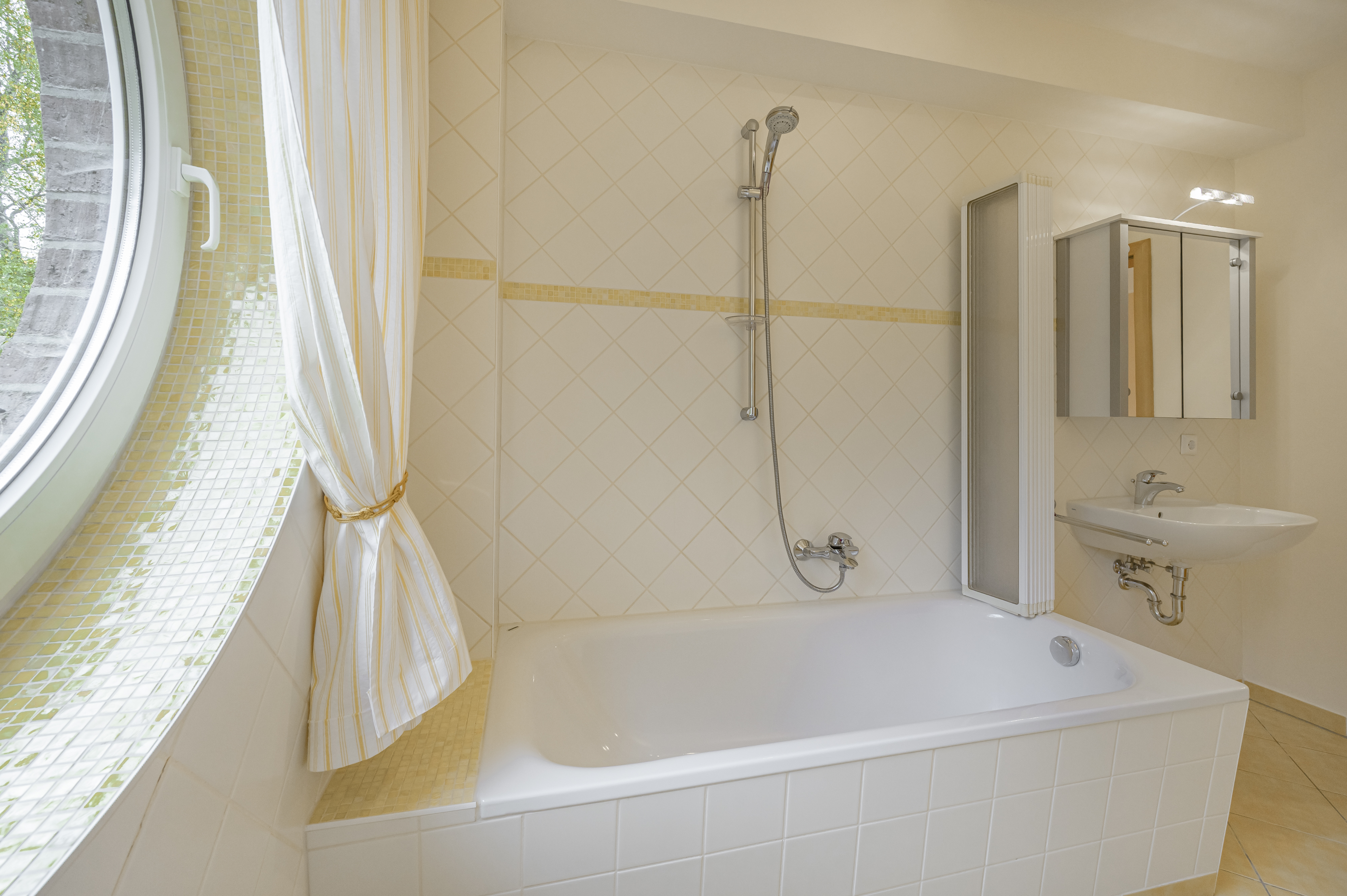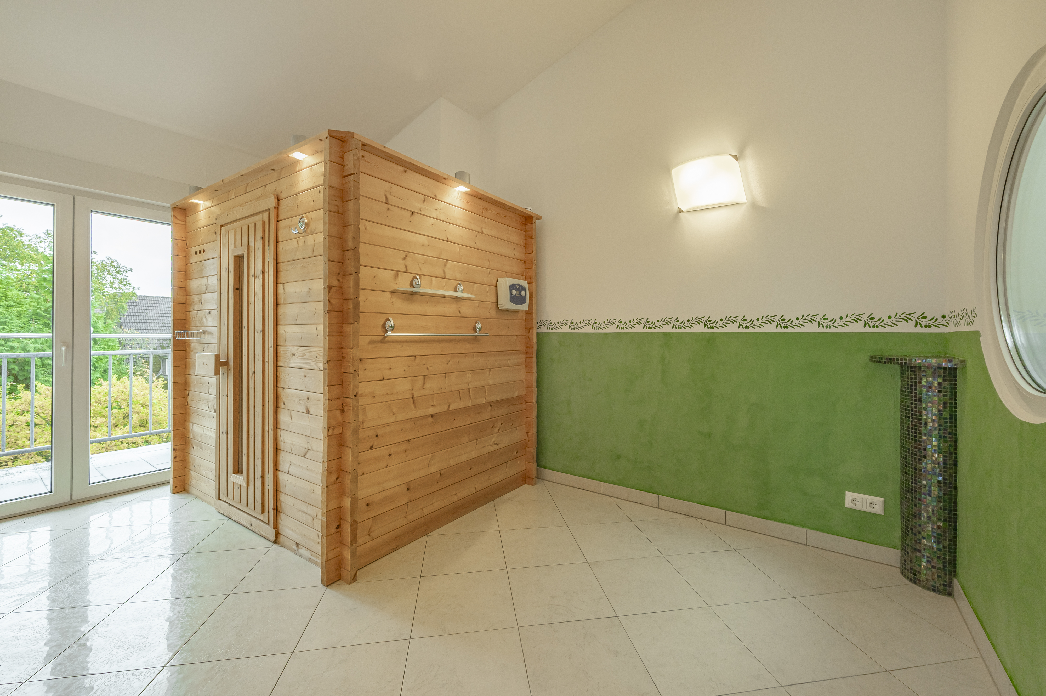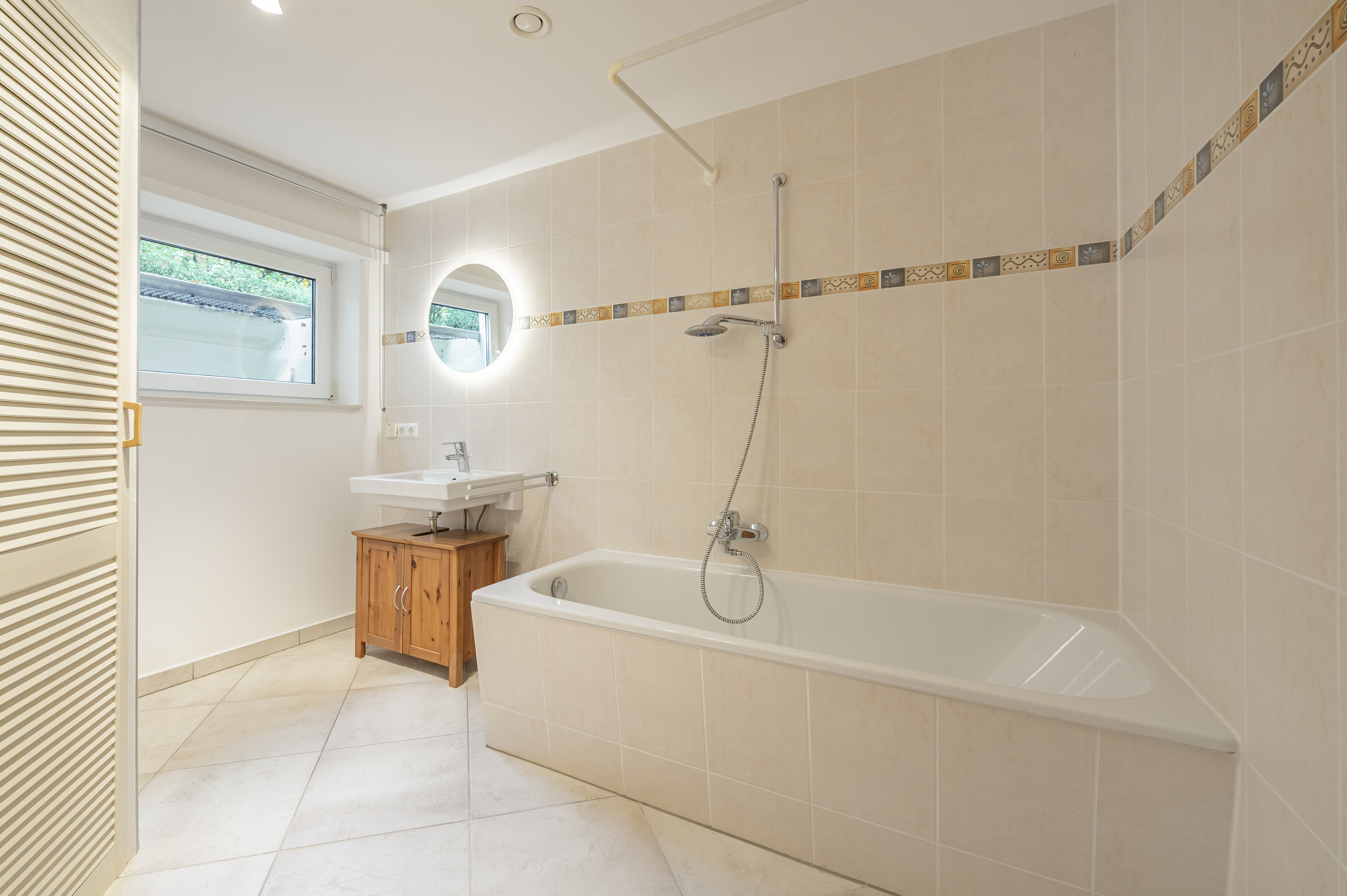 Das Hochparterre ist zudem mit hochwertigen Fliesen ausgestattet, was eine elegante