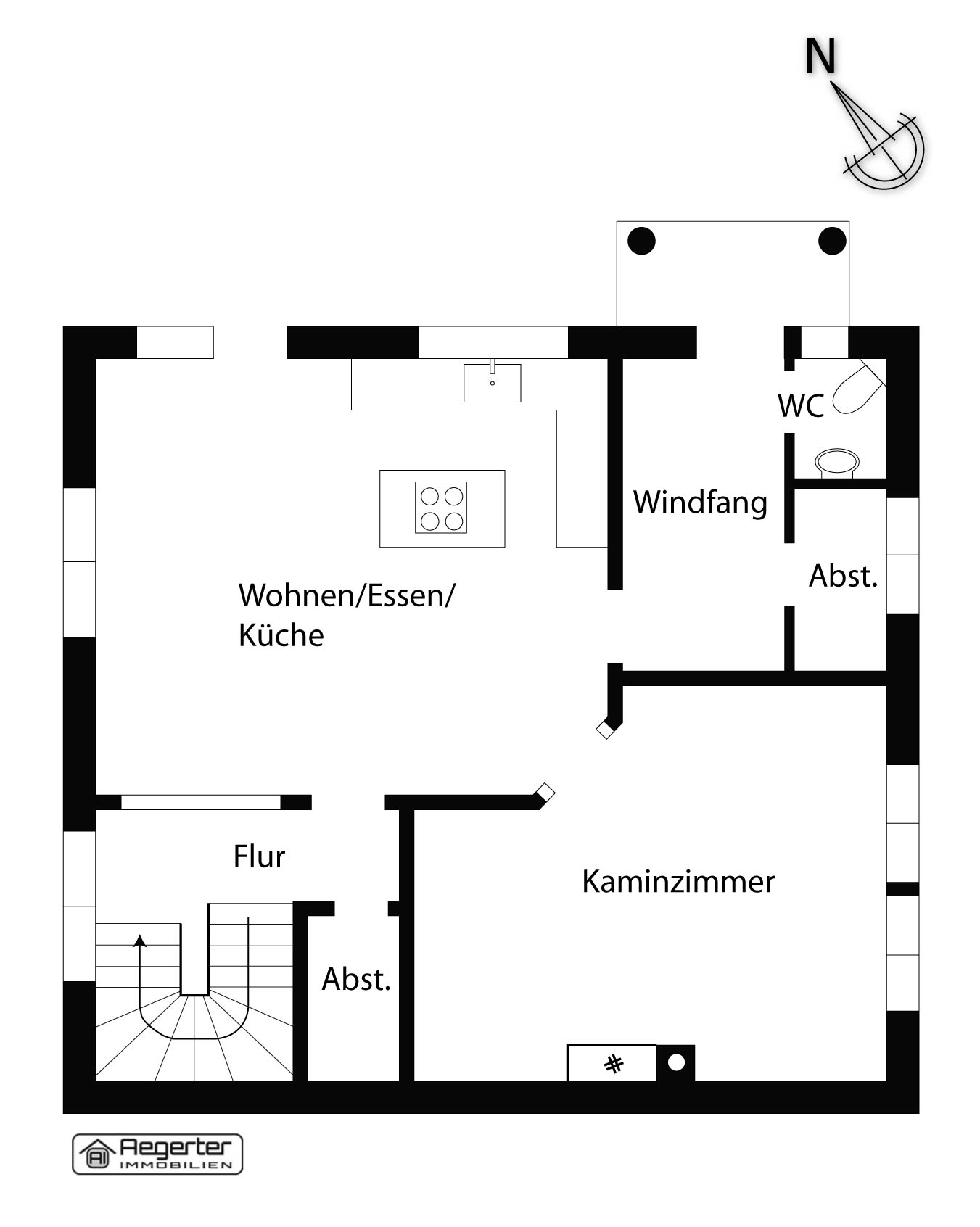 Einbauten und Elektrogeräten und Platz für einen großen Esstisch sowie ein gemütliches