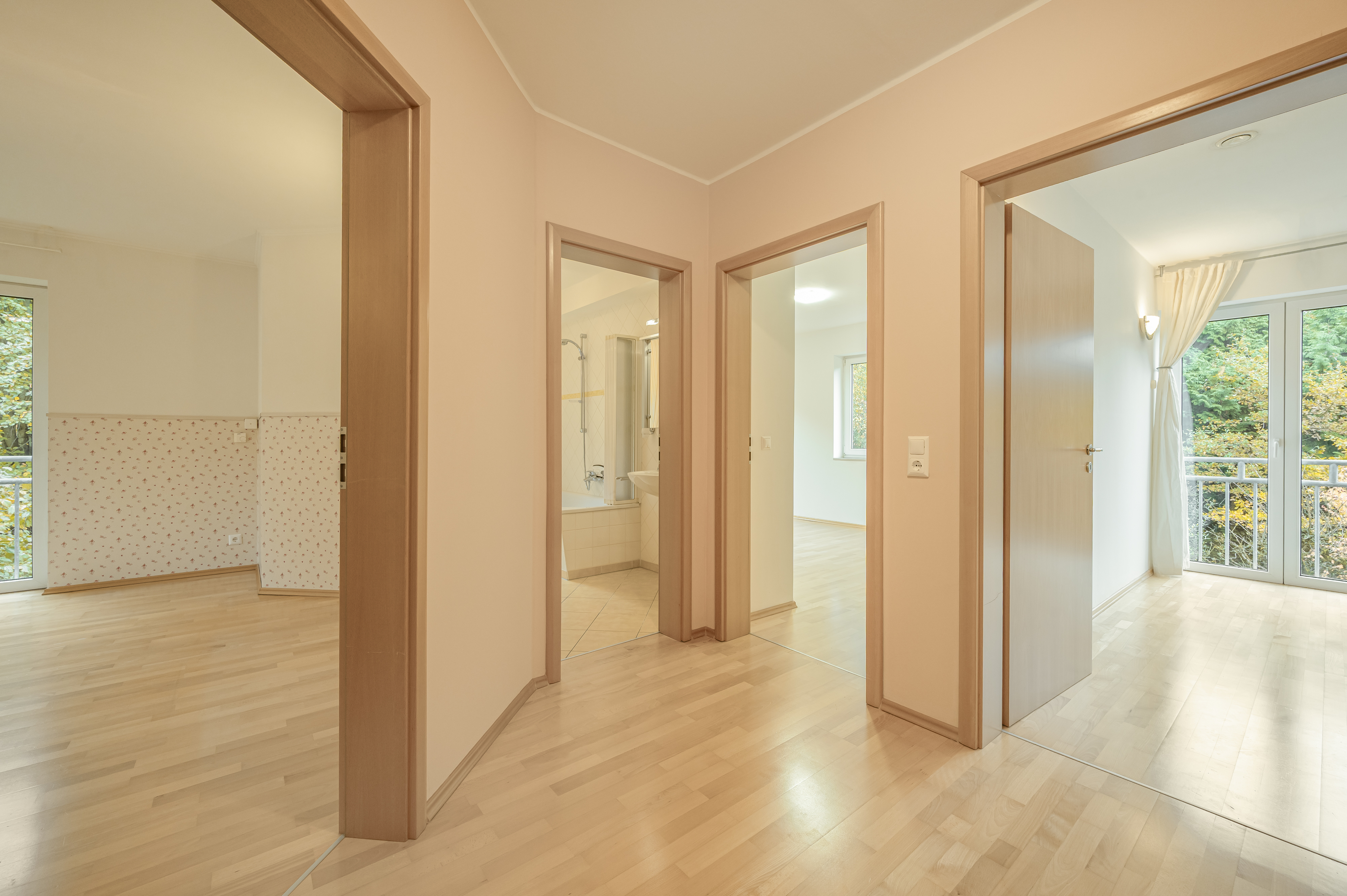 Schlafräume des Hauses sowie die Flure sind mit einem Parkettboden ausgelegt, das den