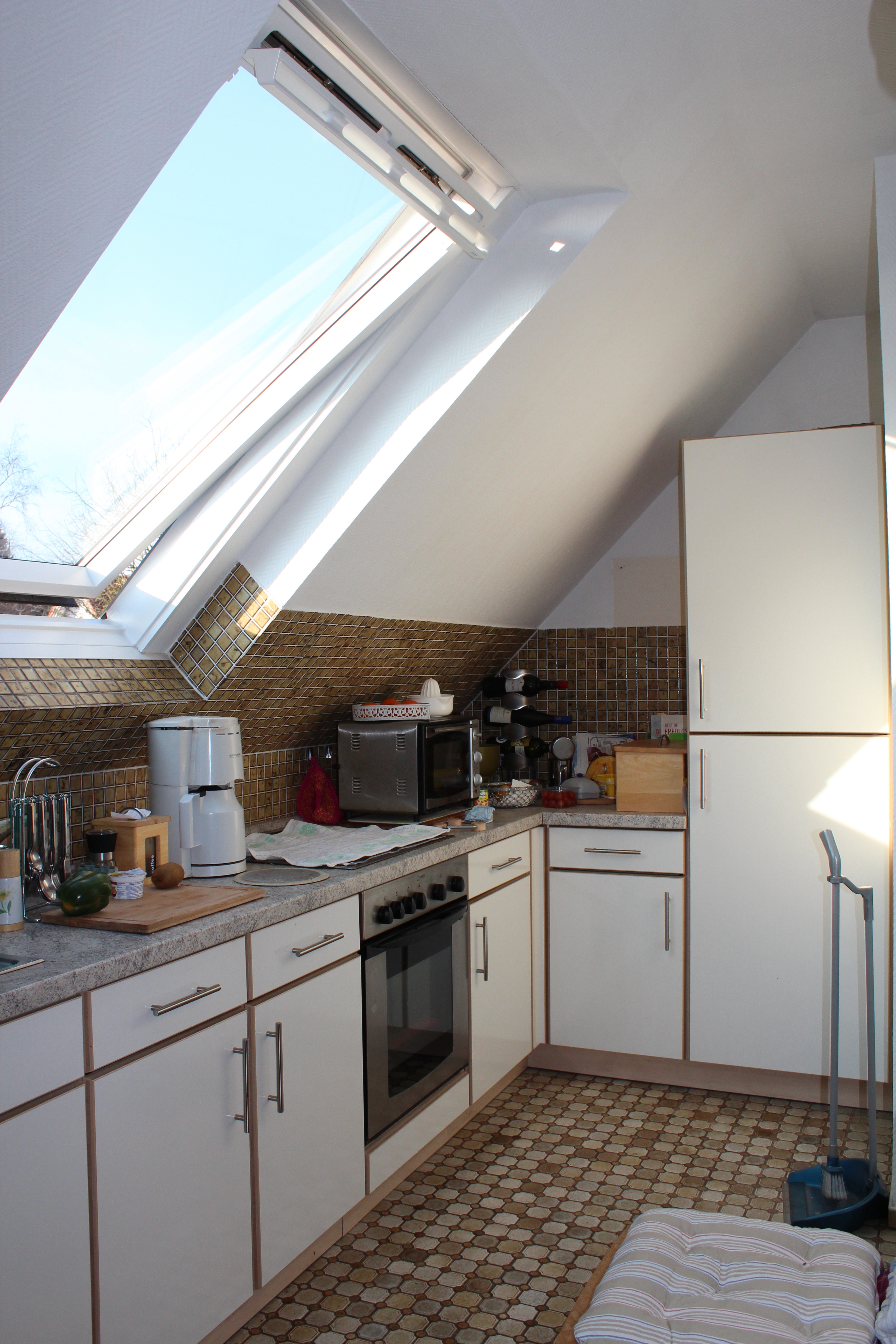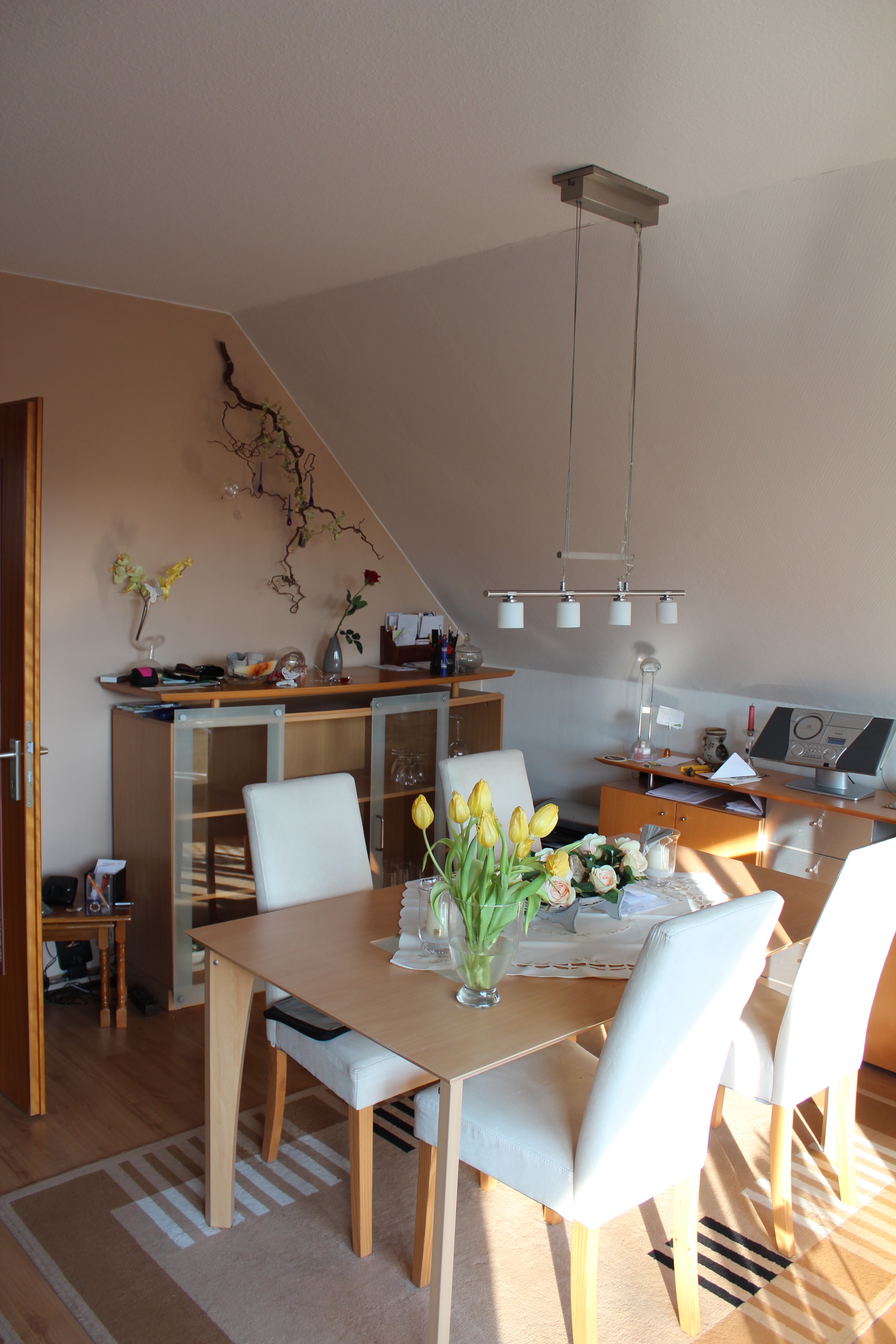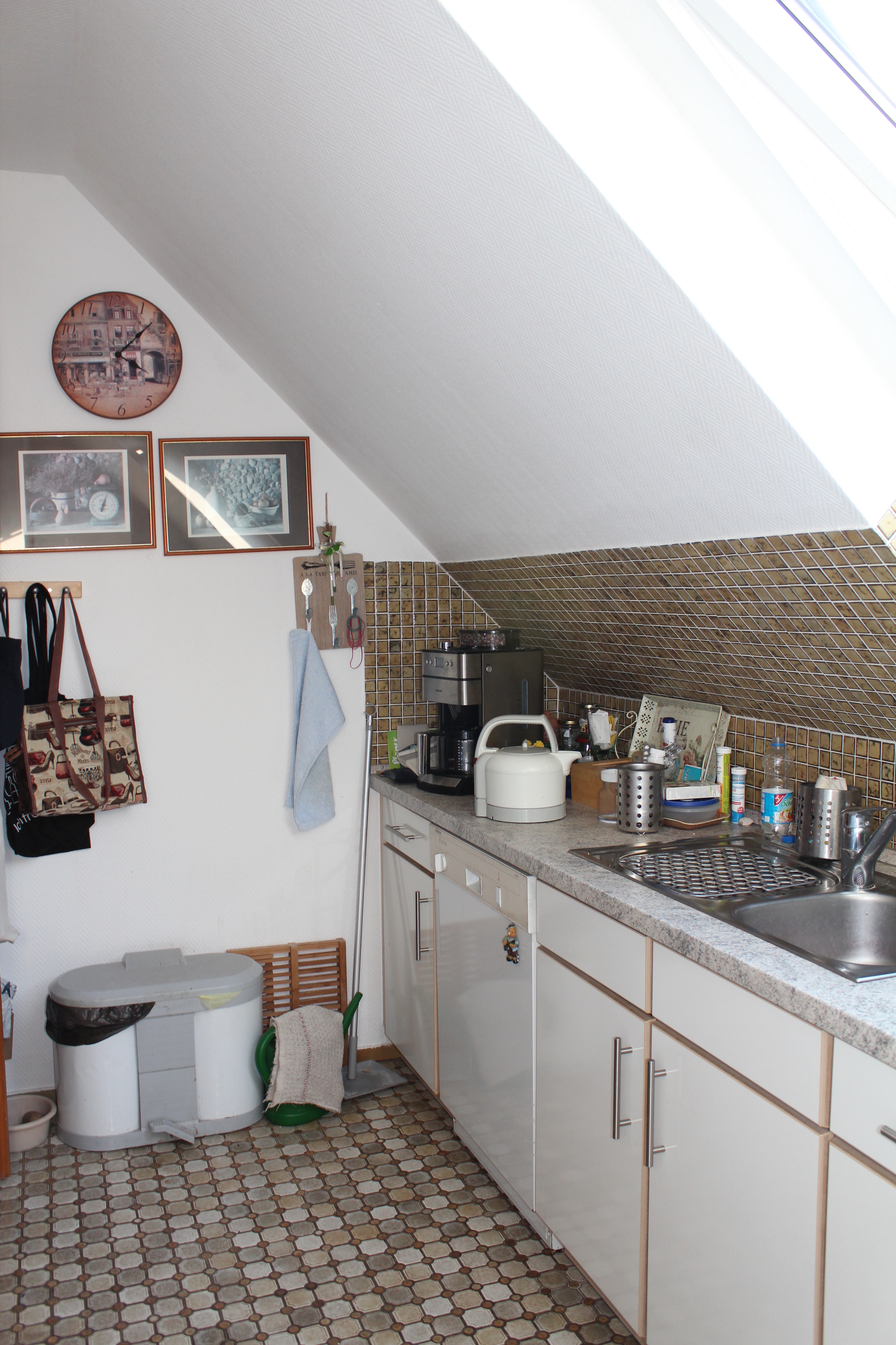 Diese Wohnung befindet sich im Dachgeschoss eines gepflegten Zweifamilienhauses. Die Wohnfläche von ca. 62 m² verteilt sich auf zwei Schlafzimmer, eine Küche , einen Flur und ein großes Wohnzimmer mit einem Süd-Balkon, der sich über die gesamte Breite des Hauses erstreckt und den Blick in den grünen Gaten gewährt. Die Küche ist mit einer hellen Einbauküche inkl. Elektrogeräten ausgestattet. das Duschbad ist ist mit grauen Fußbodenfliesen und weißen Wandfliesen modern gestaltet. In den Räumen ist ein Laminat als Fußbodenbelag verlegt. Ein Abstellraum im Spitzbogen rundet das Angebot ab.