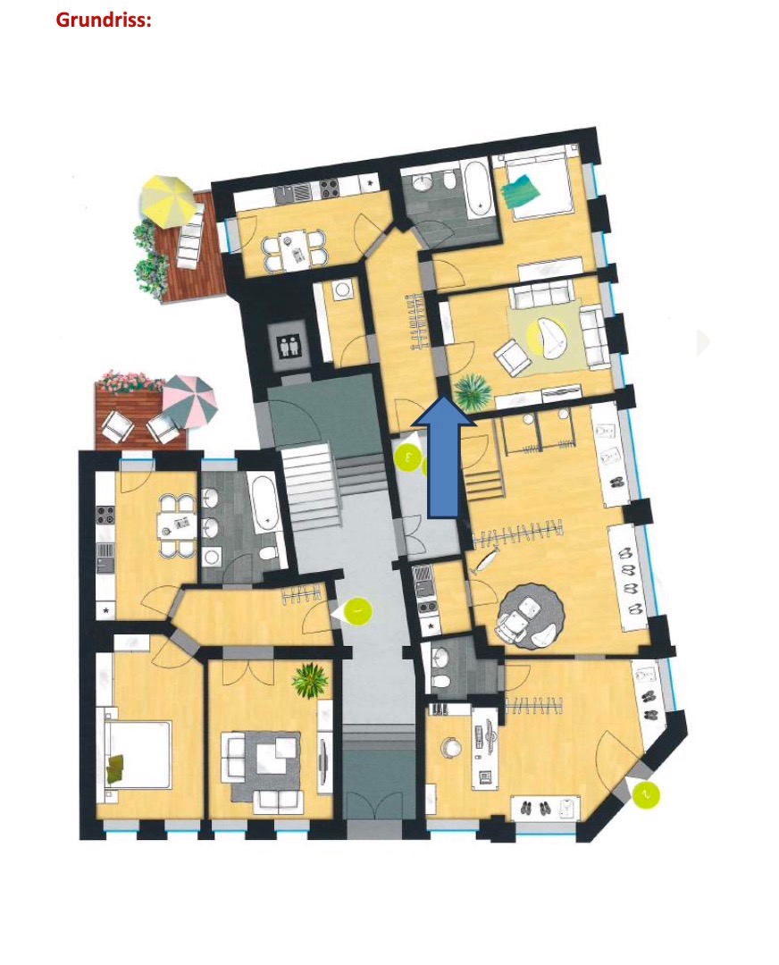 Hochparterre in einem historischen und stuckverziertem Eckgebäude mit Turm aus dem